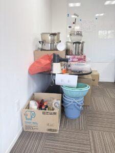 さらに、用意した器具は、当日の動線を考えていくつかのエリアに分け、それぞれ使用する場所ごとに仕分けを行いました。