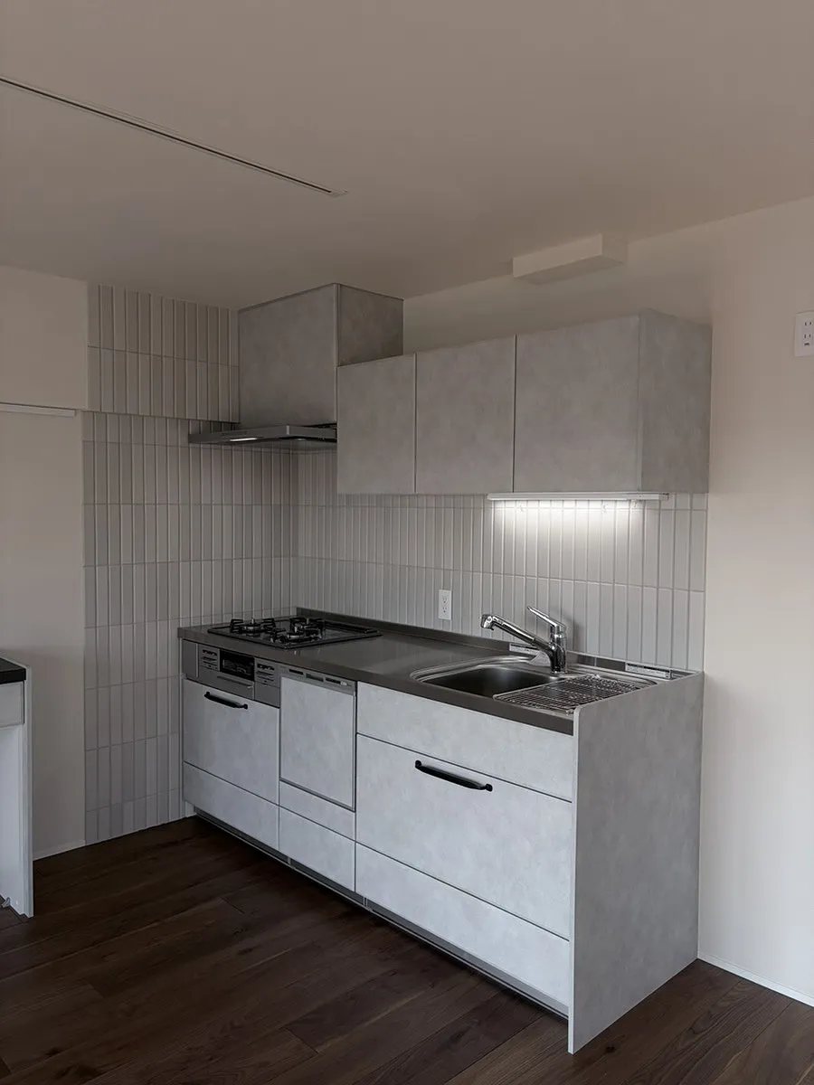↓キッチンのタイルと洗面の床タイルの様子