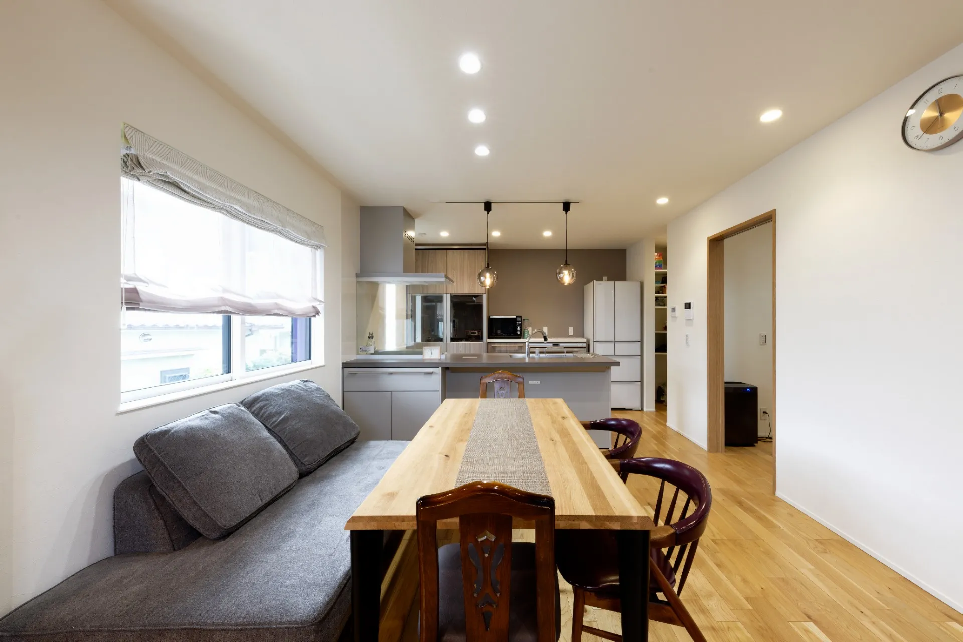 新築の内装の実例では、リビングやダイニングのゾーニングや、収納の工夫が快適な生活動線を生み出しています。例えば、リビングには大型ソファやローテーブルを配置し、家族が自然と集まる場所を確保。収納は壁面収納や造作棚を活用し、生活感を隠しつつおしゃれな印象を保つ方法が多く見られます。