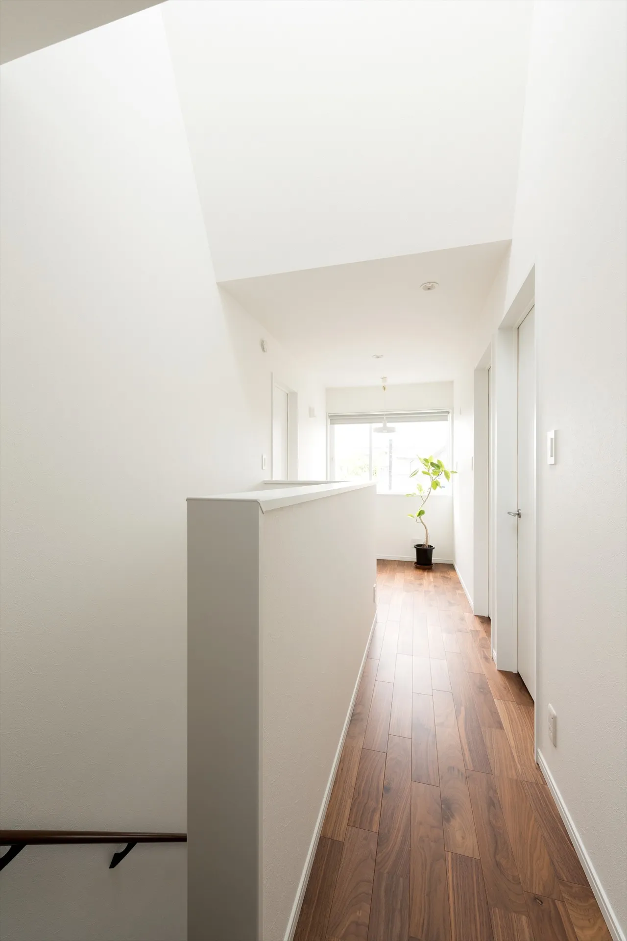 新築住宅に天窓を設けることで、兵庫県神戸市ならではの豊かな自然光を室内に取り込むことができます。天窓は壁面窓に比べて約2倍以上の採光効果があり、リビングや廊下など家の中心部まで明るさを届けるのが特長です。