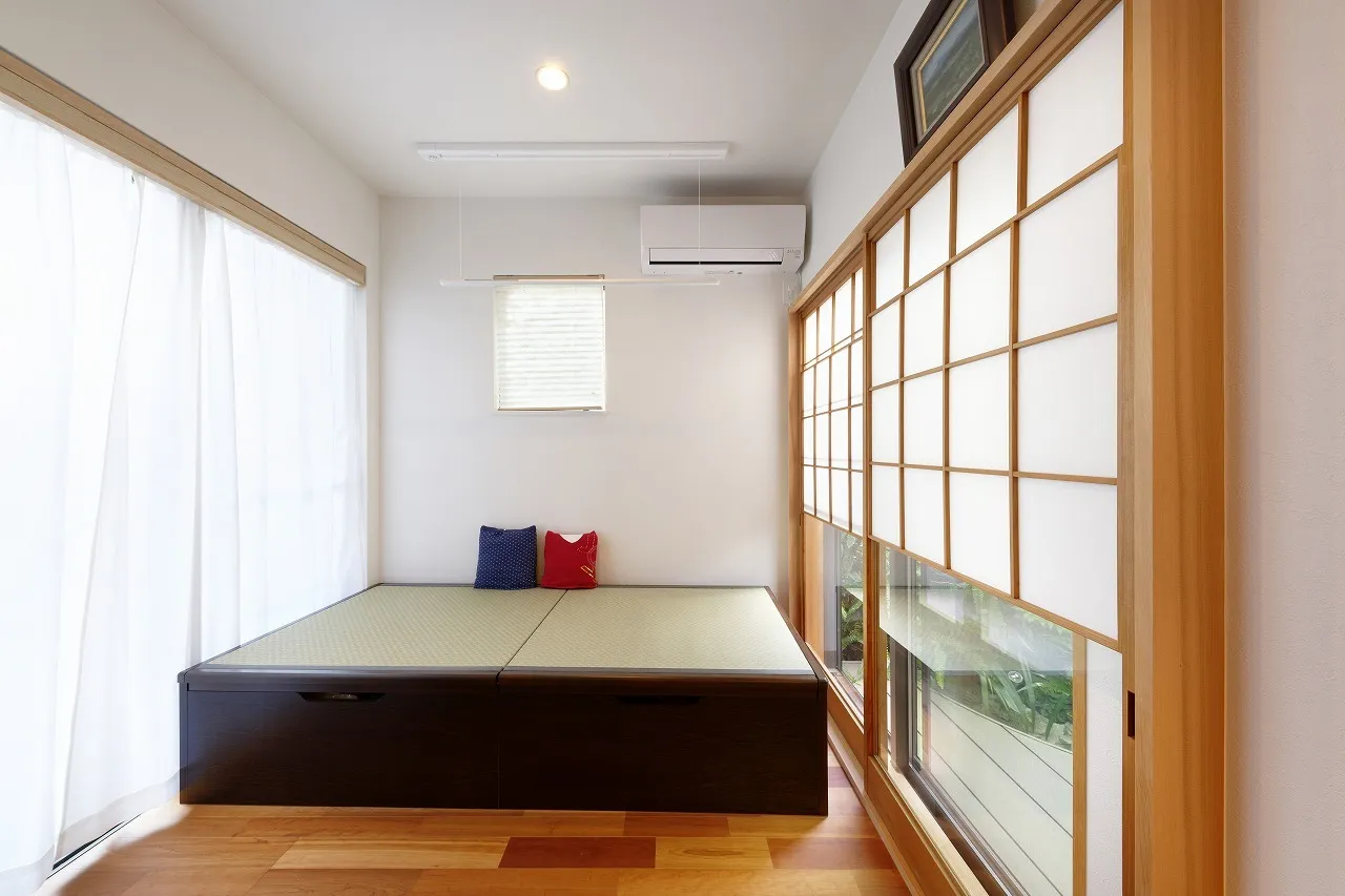和室は畳や障子による断熱・調湿効果があるほか、リビングやダイニングと連続した空間にすることで使い勝手が向上します。例えば、床座での団らんやお昼寝、趣味のスペースとしても活用でき、生活の幅が広がります。